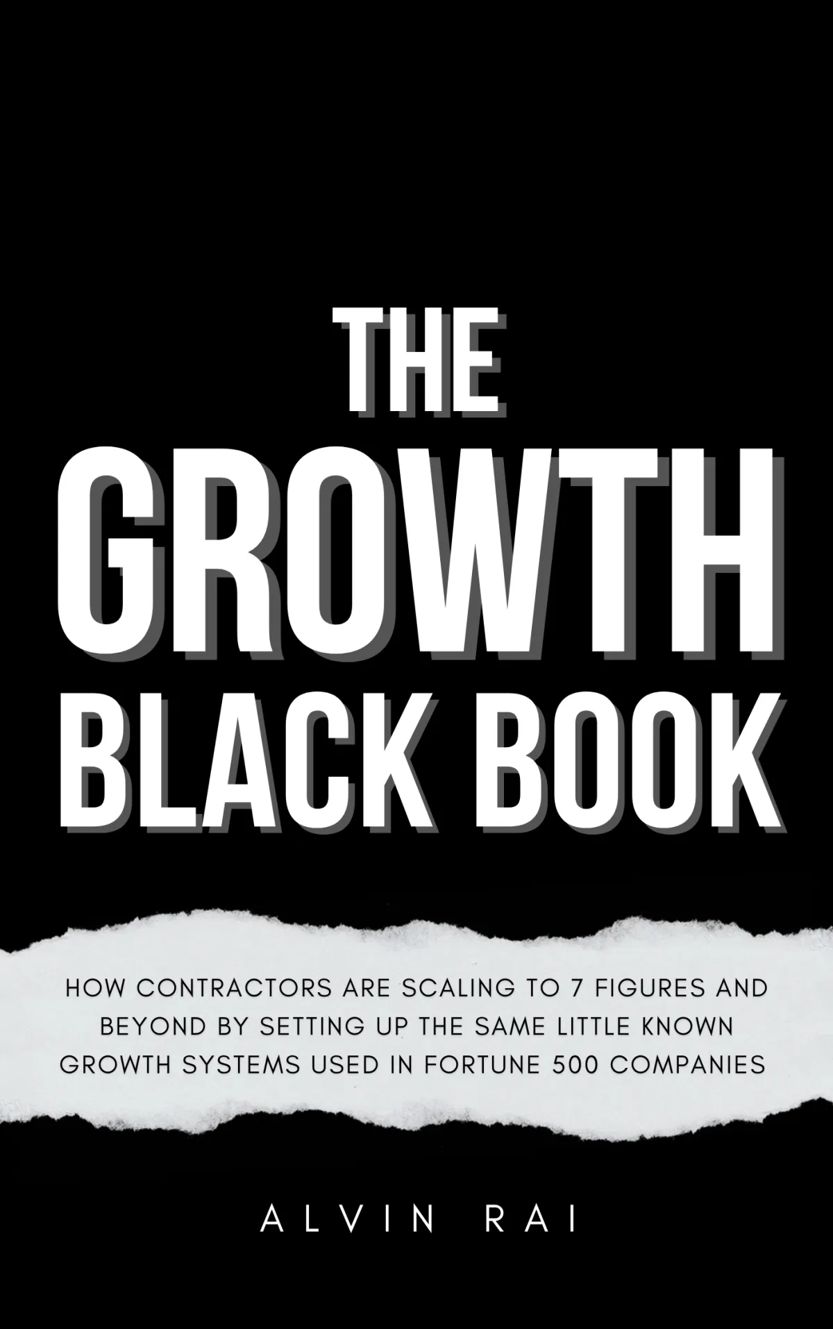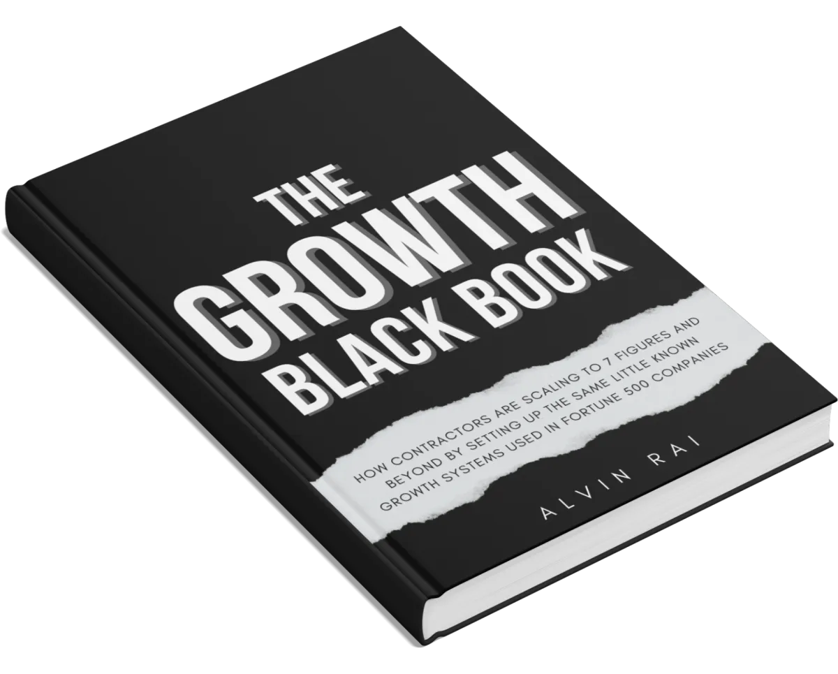 The Growth Black Book is an Ebook that shows you how to turn your contractor business into a well oiled machine using multiple growth systems. When these systems are in place, they work together to multiply your revenue, without multiplying your workload (and often cutting it in half)